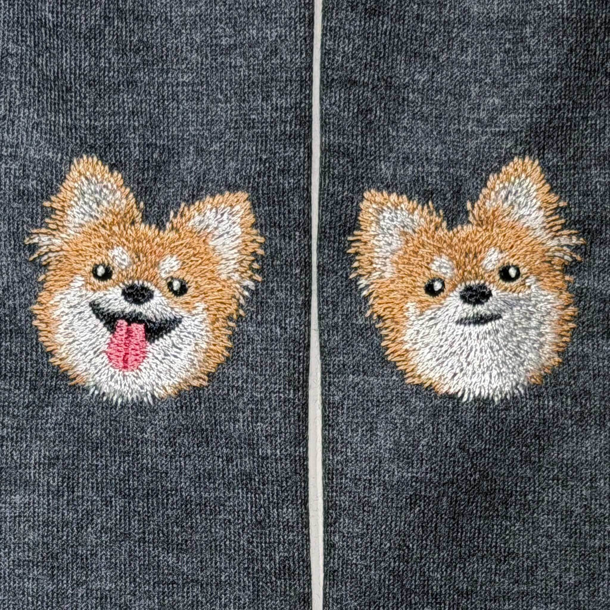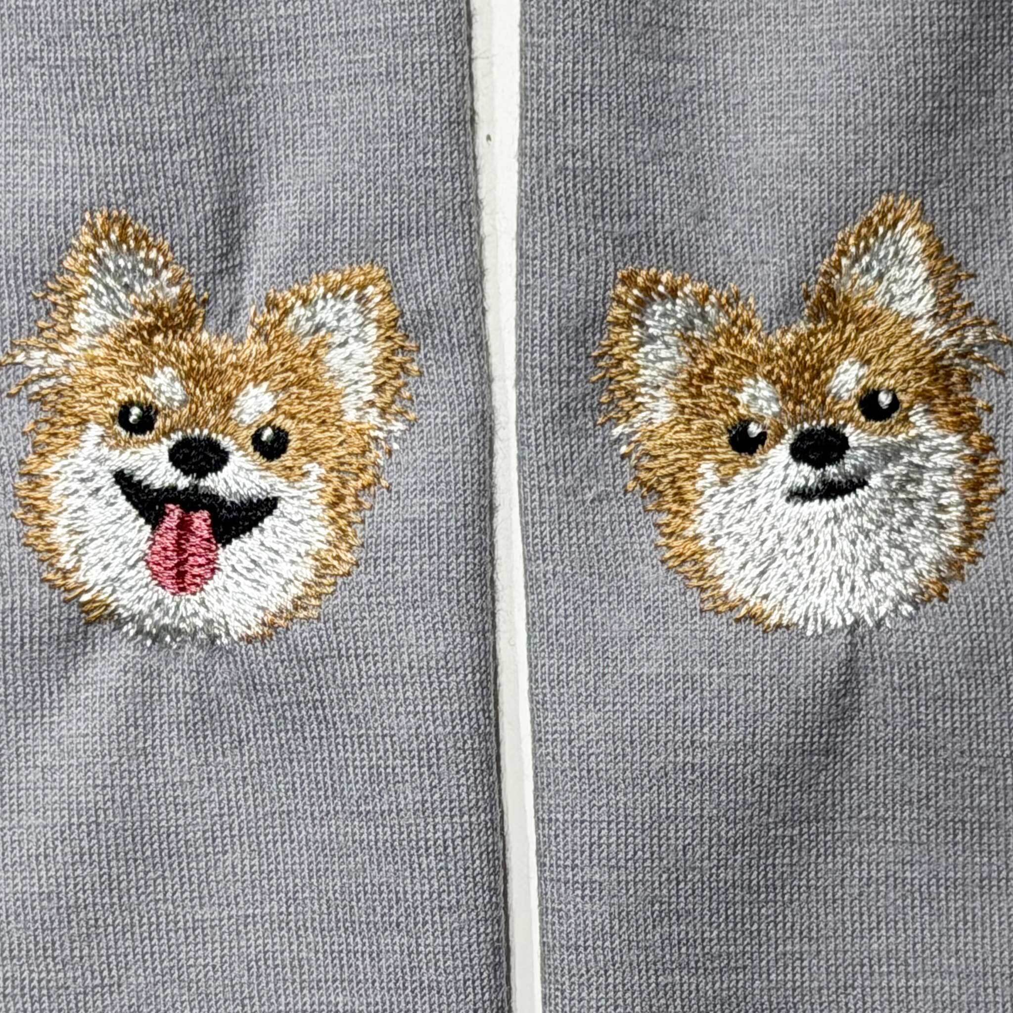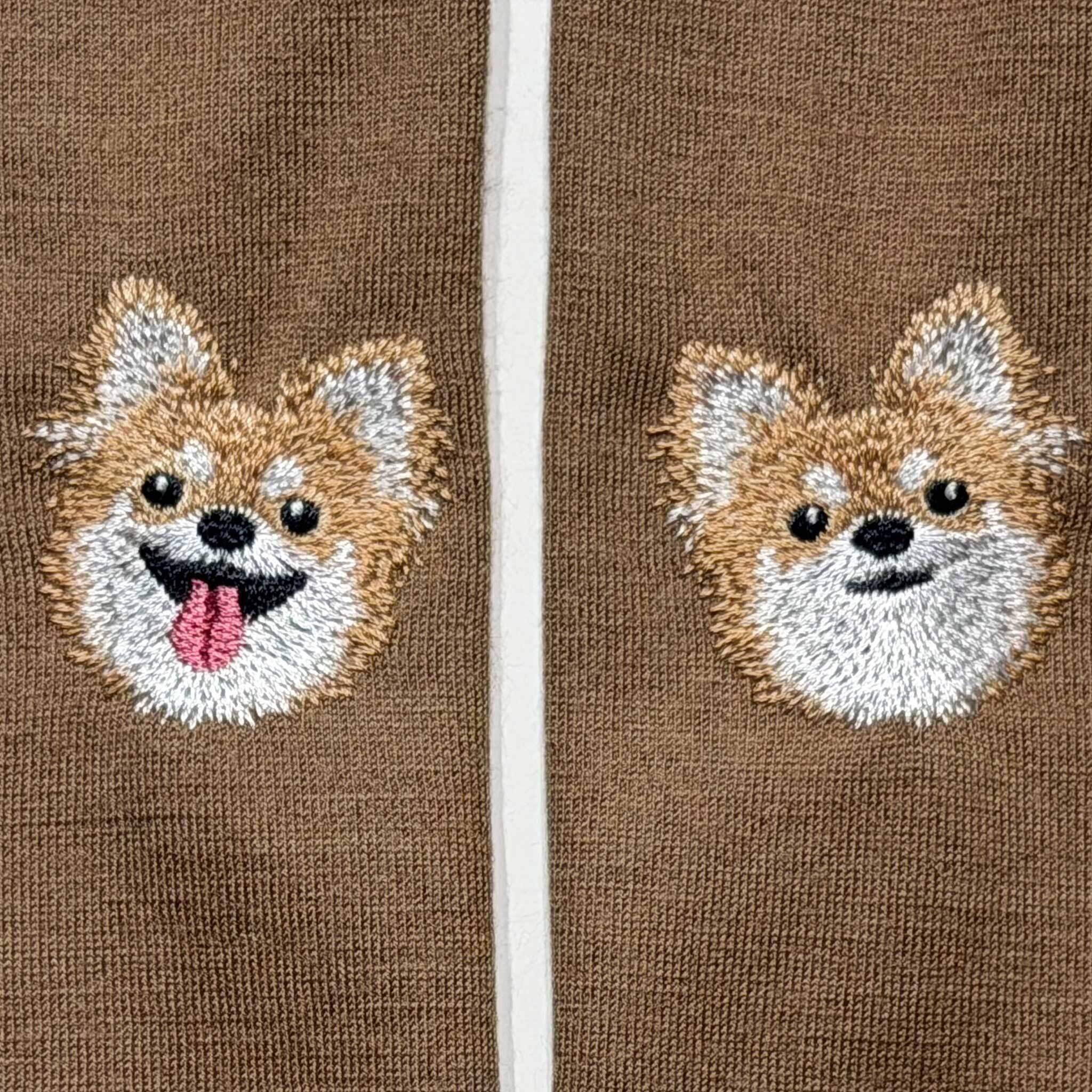 袖口から覗く愛らしい犬刺しゅうをあしらいました