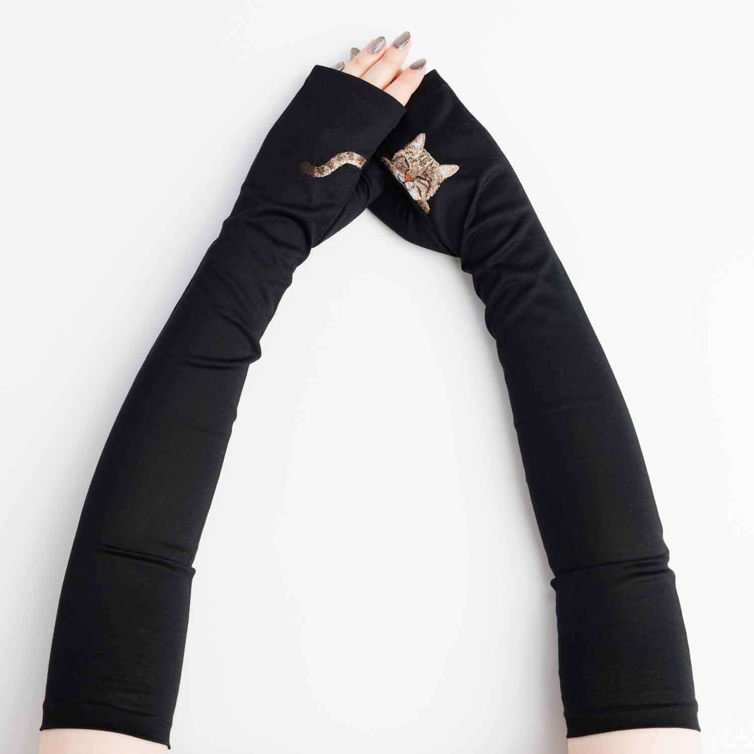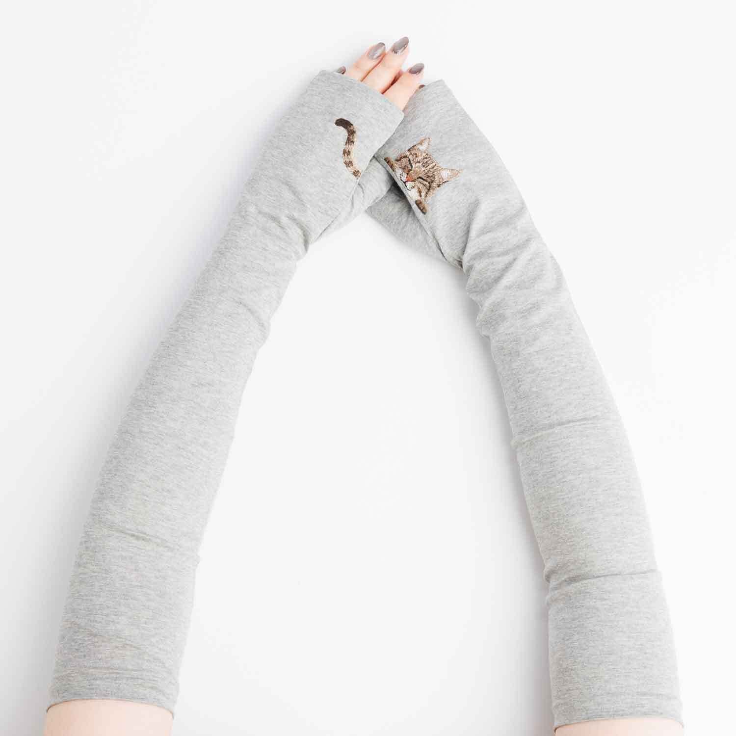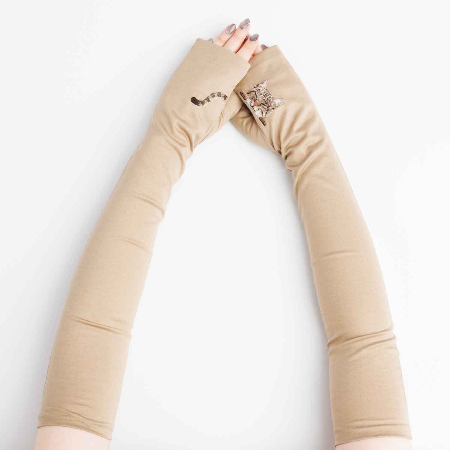 【猫ミテーヌ】キジトラ/手袋屋しか作れない アームカバー/東かがわで一貫製造/UVケア/コットン100%/春夏仕様