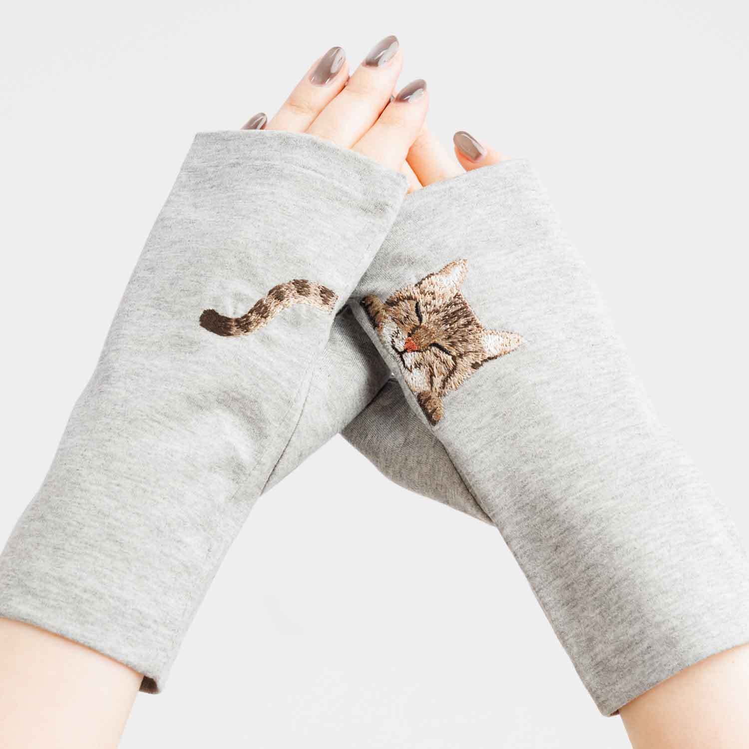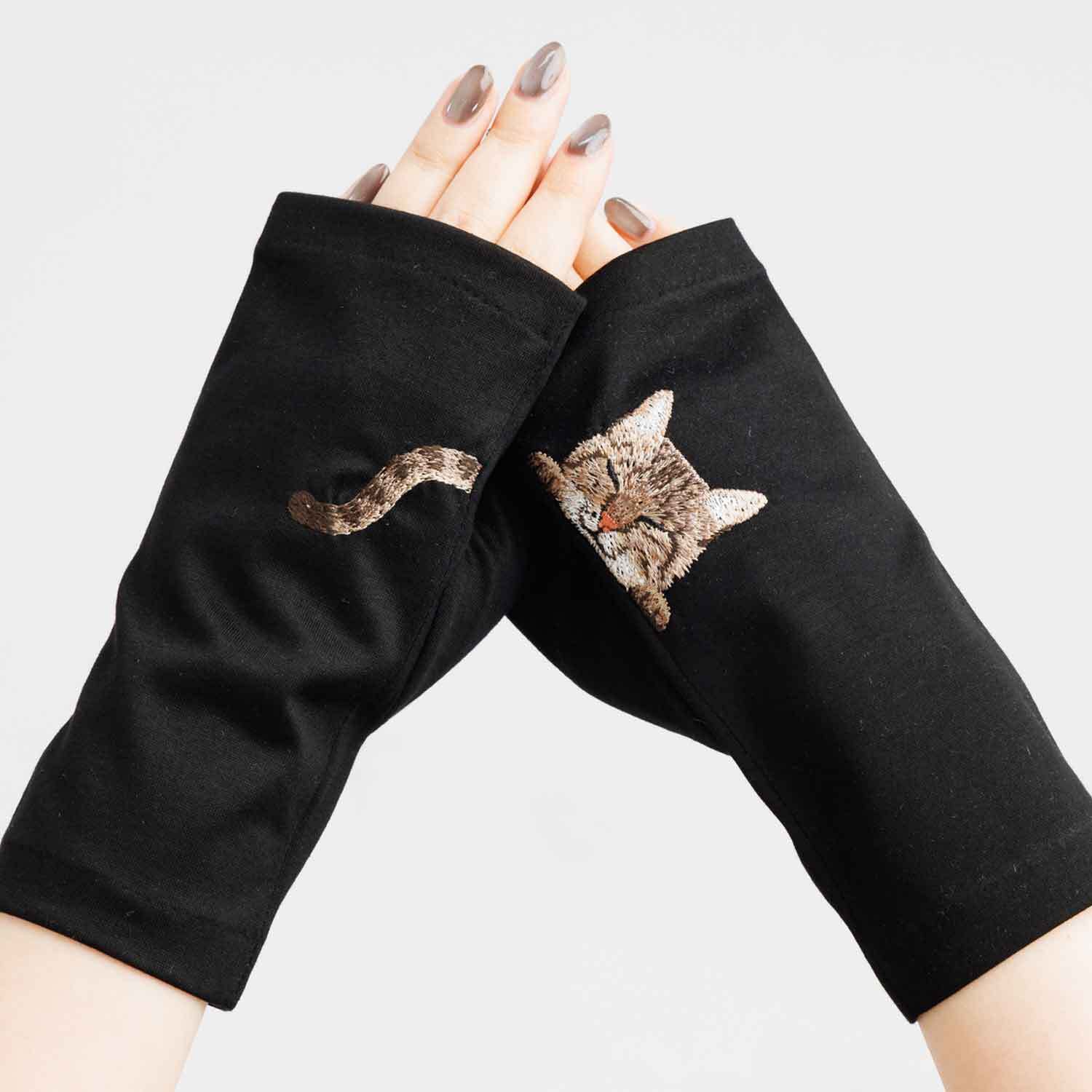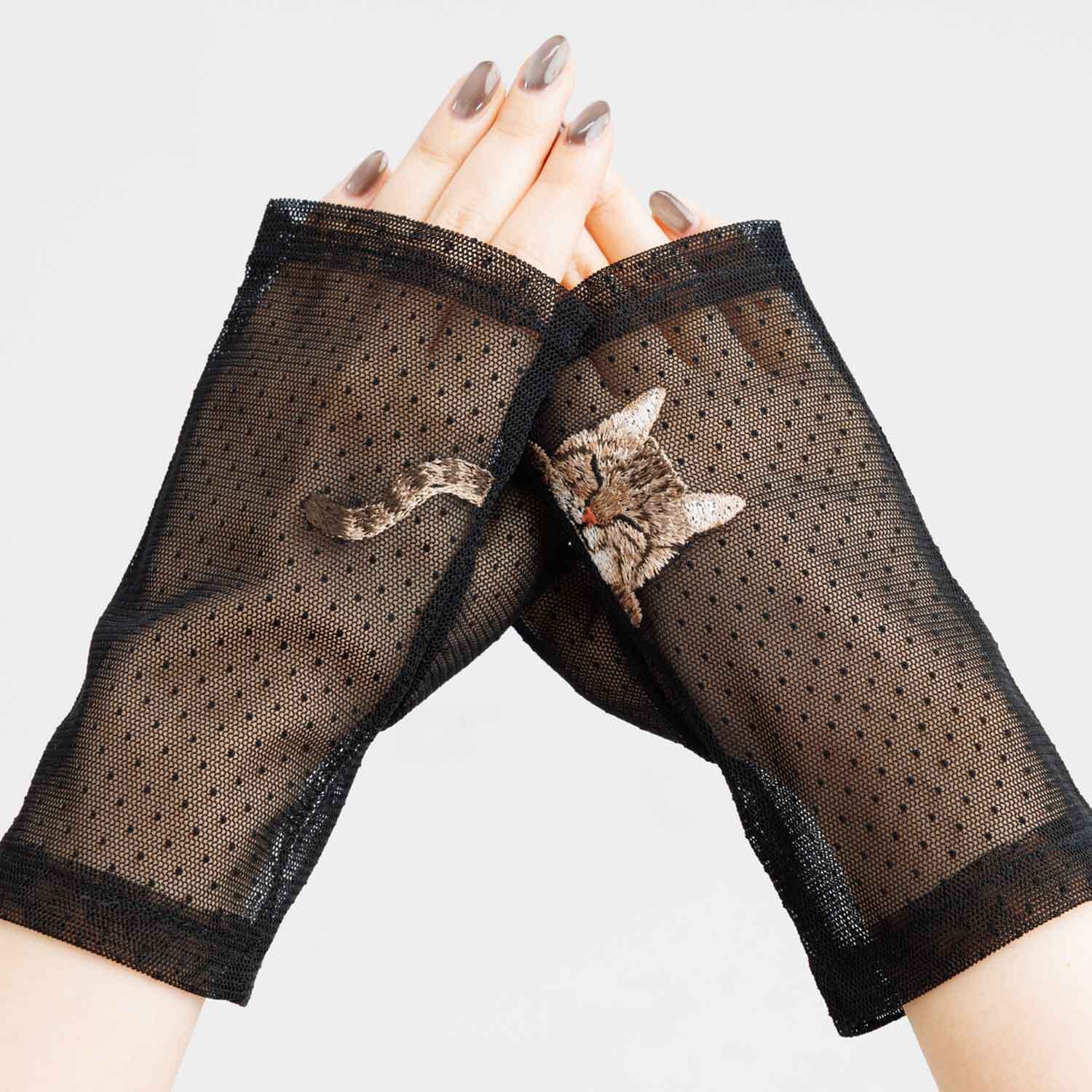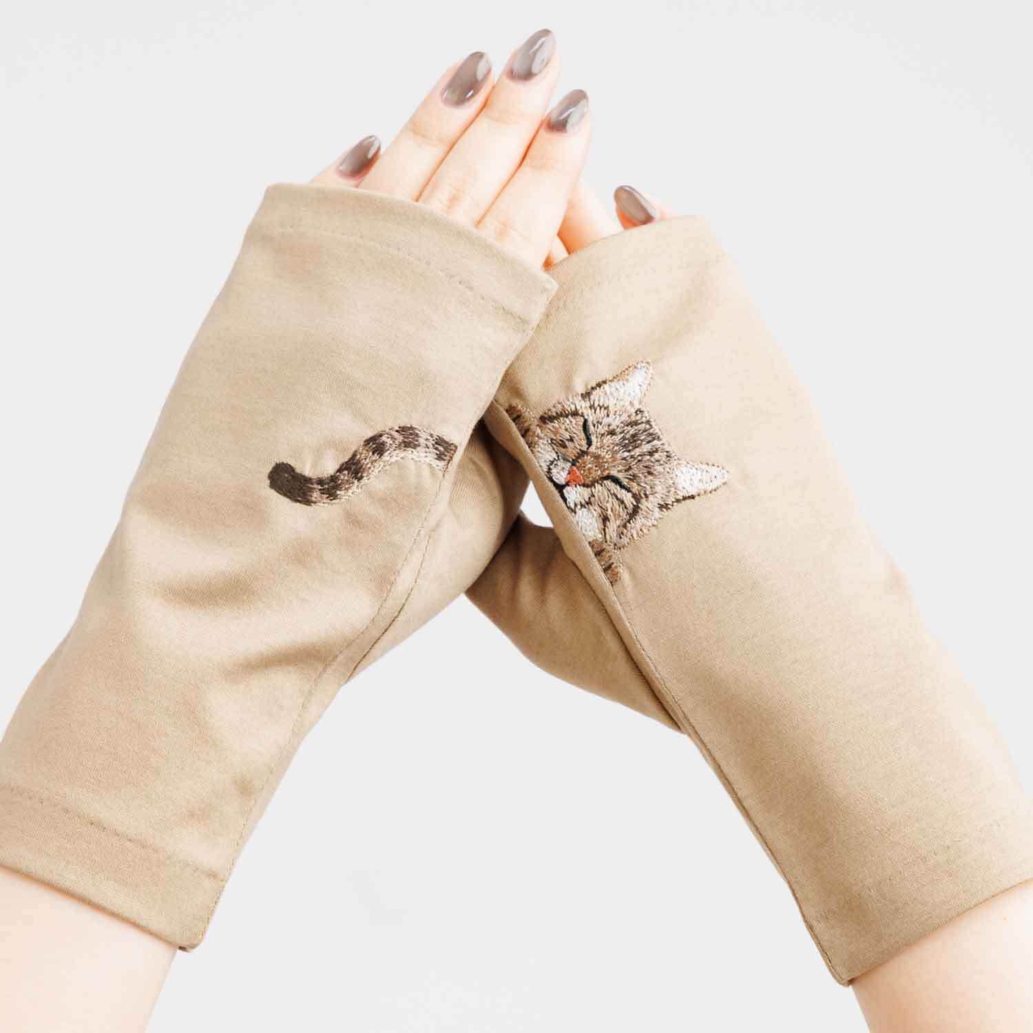 【猫ミテーヌ】キジトラ/手袋屋しか作れない アームカバー/東かがわで一貫製造/UVケア/コットン100%/春夏仕様