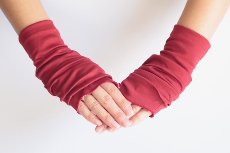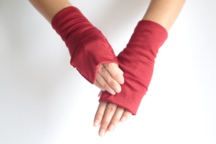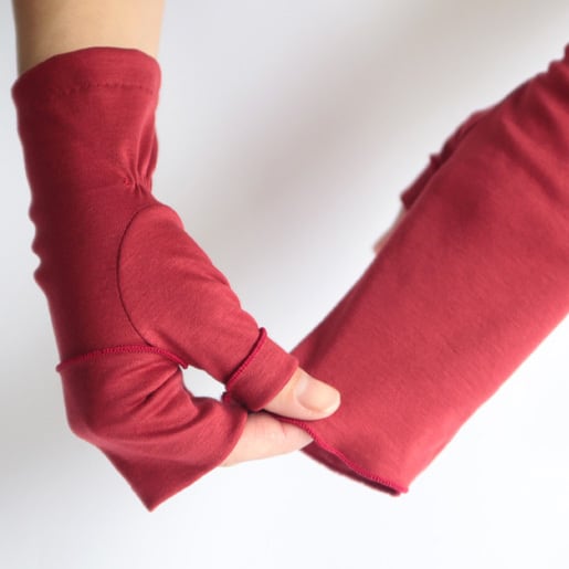 【ハンドソックス】チリレッド(赤)/さりげなくウイルス対策できるUVケア手袋/サッと伸ばして手先まで日差しから守る