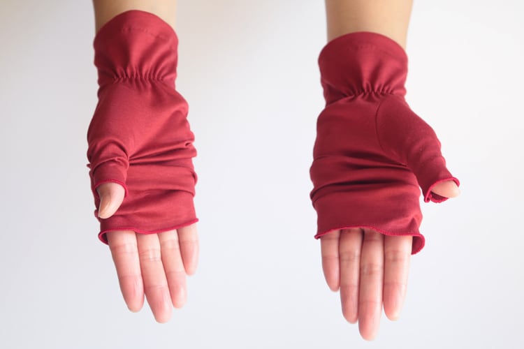 使用シーンに合わせて自由にアレンジして、室内では指先を邪魔しない指無し手袋として使い、日差しが気になるときはサッと伸ばして指先まで日焼けを予防できます。