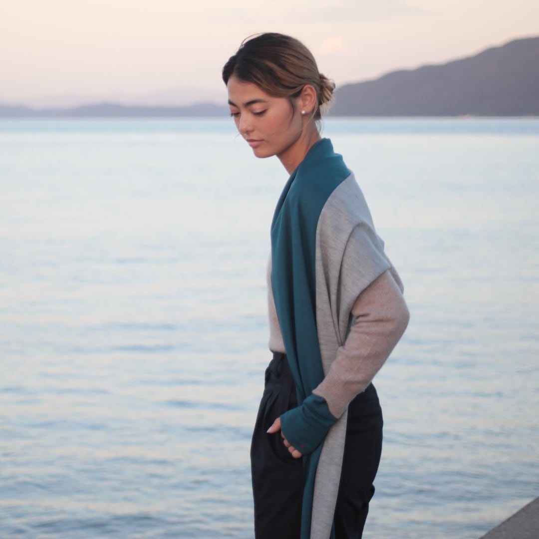 カラーコーディネートにこだわりのある方に。自分だけのカラーの組み合わせが選べます。香川県東かがわ市の職人によって作られたウール100%のコンビマフラー。