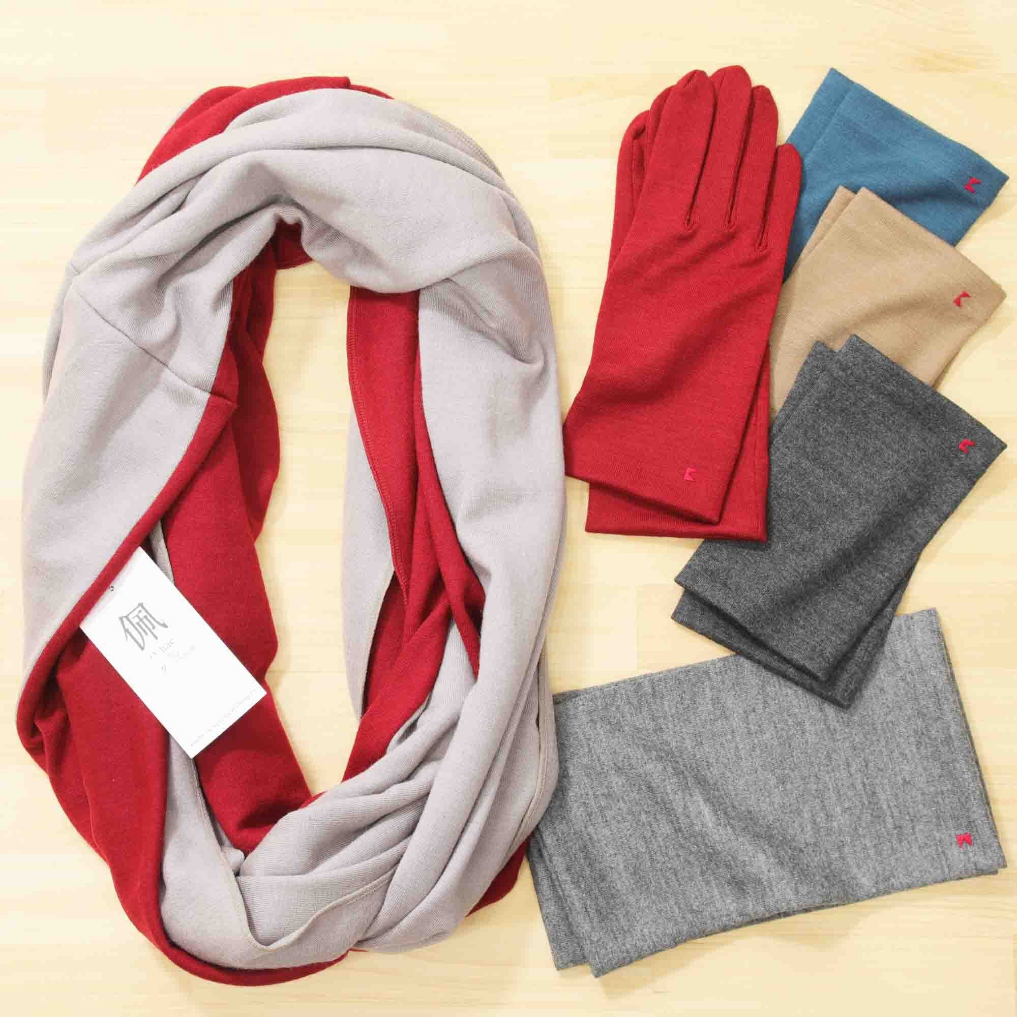 手袋と同じく、上質な梳毛(そもう)ウール100%素材を贅沢に使用。ウール特有のチクチク感が少なく、まるで柔らかな布をまとっているかのような滑らかな肌触りです。薄手ながらも、ウールが持つ高い保温性・保湿性・通気性のバランスが良く、寒い屋外はもちろん、暖房の効いた屋内でも快適にお過ごしいただけます。