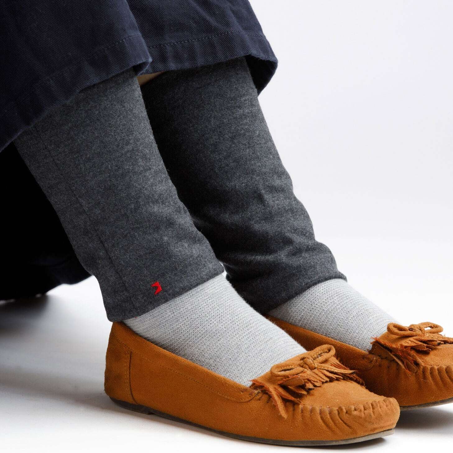 香川県東かがわ市の職人によって作られたウール100%の足元から優しく暖めるレッグウォーマー。さり気ない左右ペアのワンポイントは手刺繍で仕上げました。