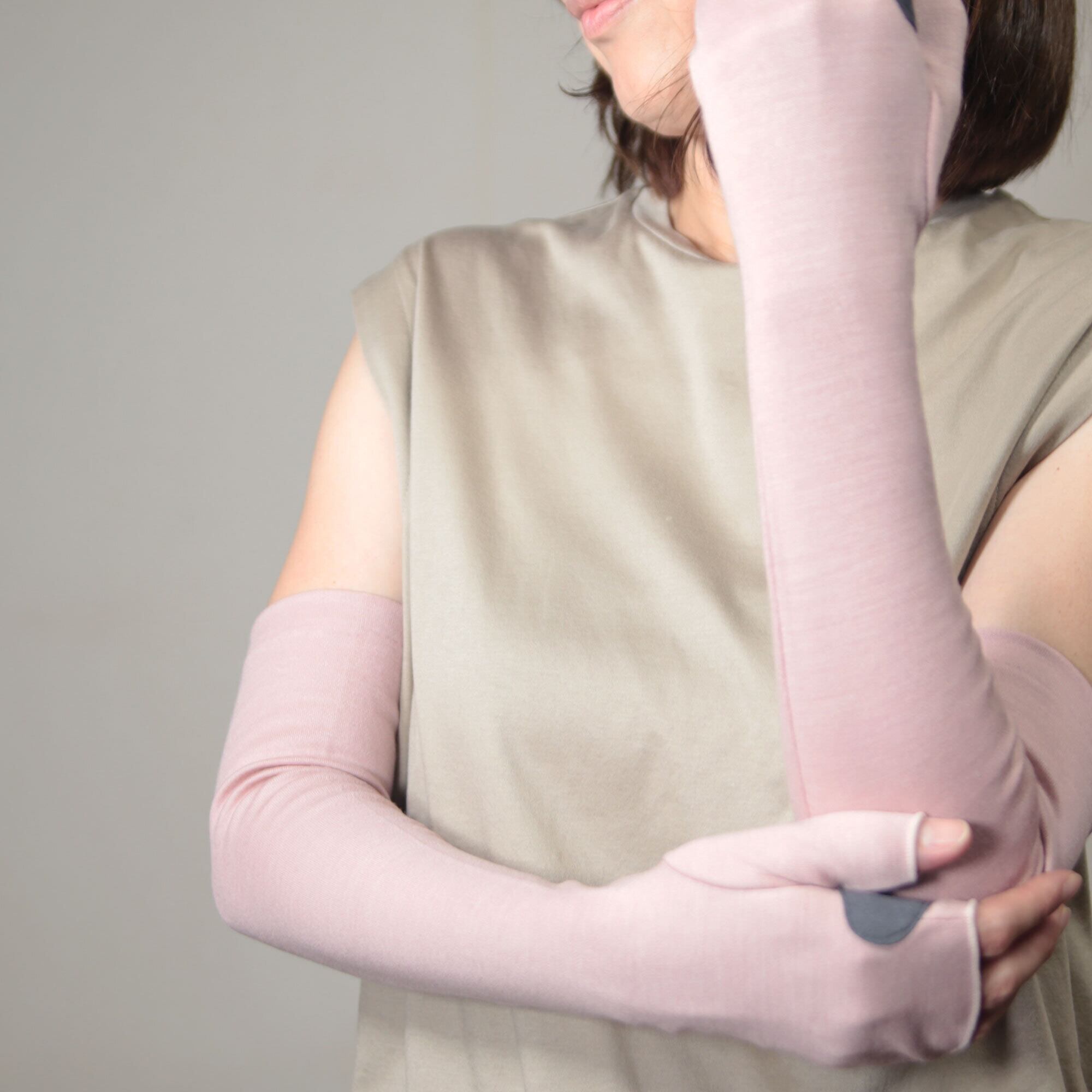 【シルクウール・アームカバー・ミテーヌセミロング】 ピンク/上質で高級感のある天然繊維・シルクウールを使用したUVケア・アームカバー