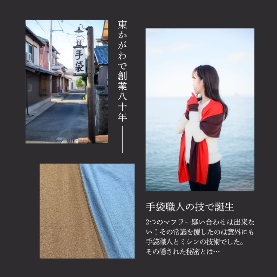 【コンビマフラー】東かがわの手袋職人がつくった/梳毛ウール100%/いつもの服がワンランクアップ