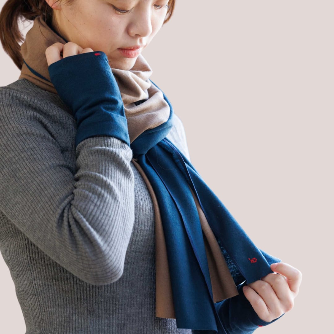 カラーコーディネートにこだわりのある方に。自分だけのカラーの組み合わせが選べます。香川県東かがわ市の職人によって作られたウール100%のコンビマフラー。
