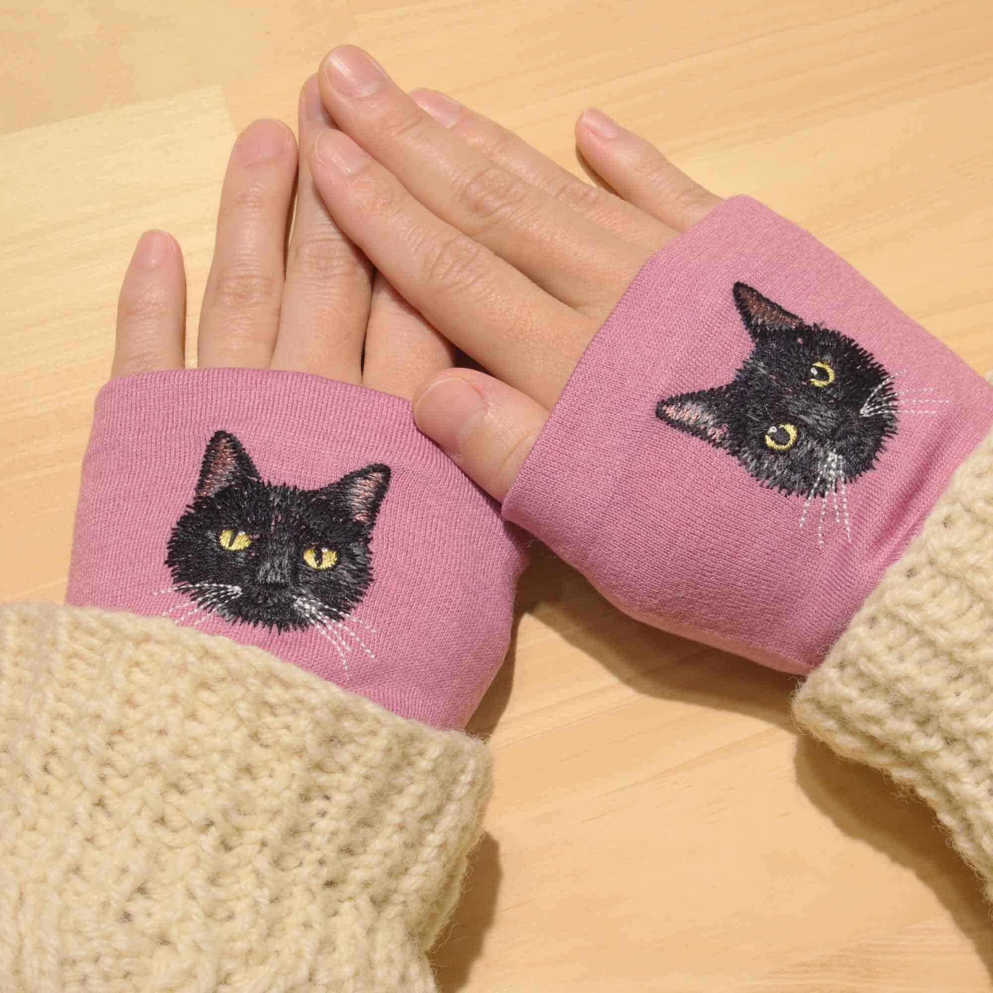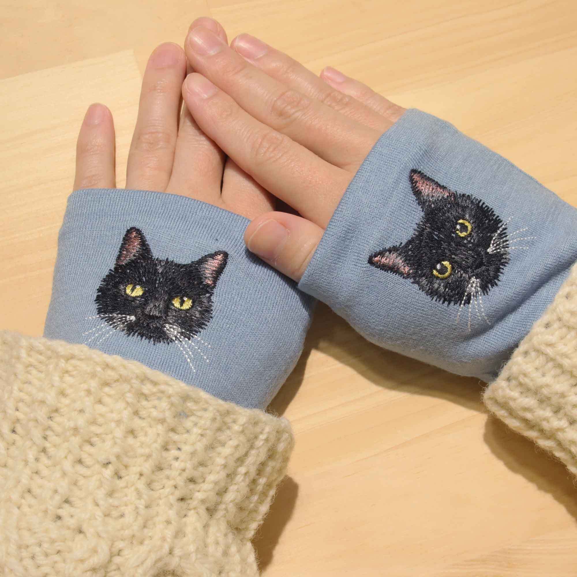 【猫リストマフラー】黒猫/一度使うと手放せない気持ち良さ/ウール100%/手首の冷え取り/新モデル