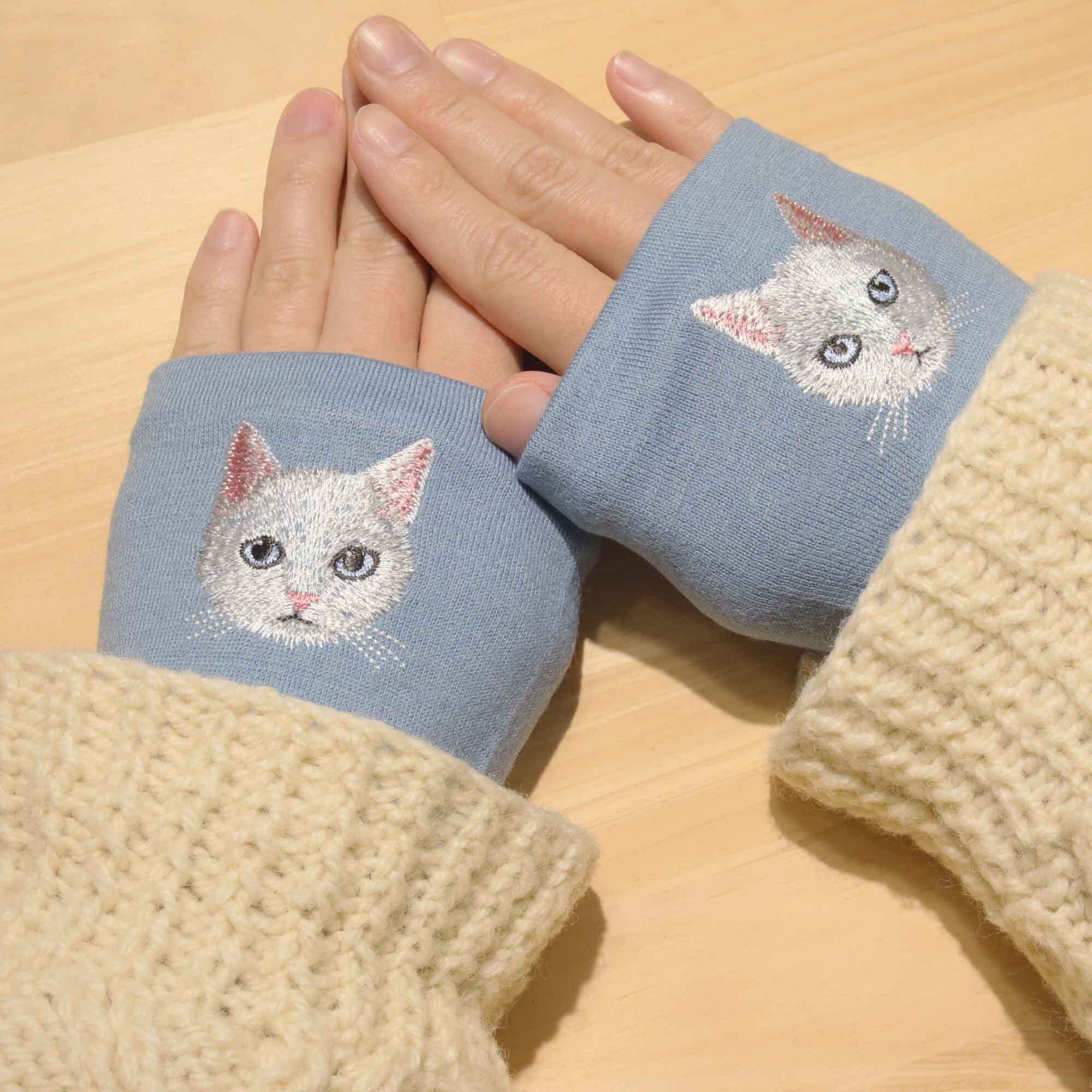 袖口から覗く愛らしいネコ刺しゅうをあしらいました