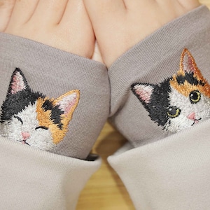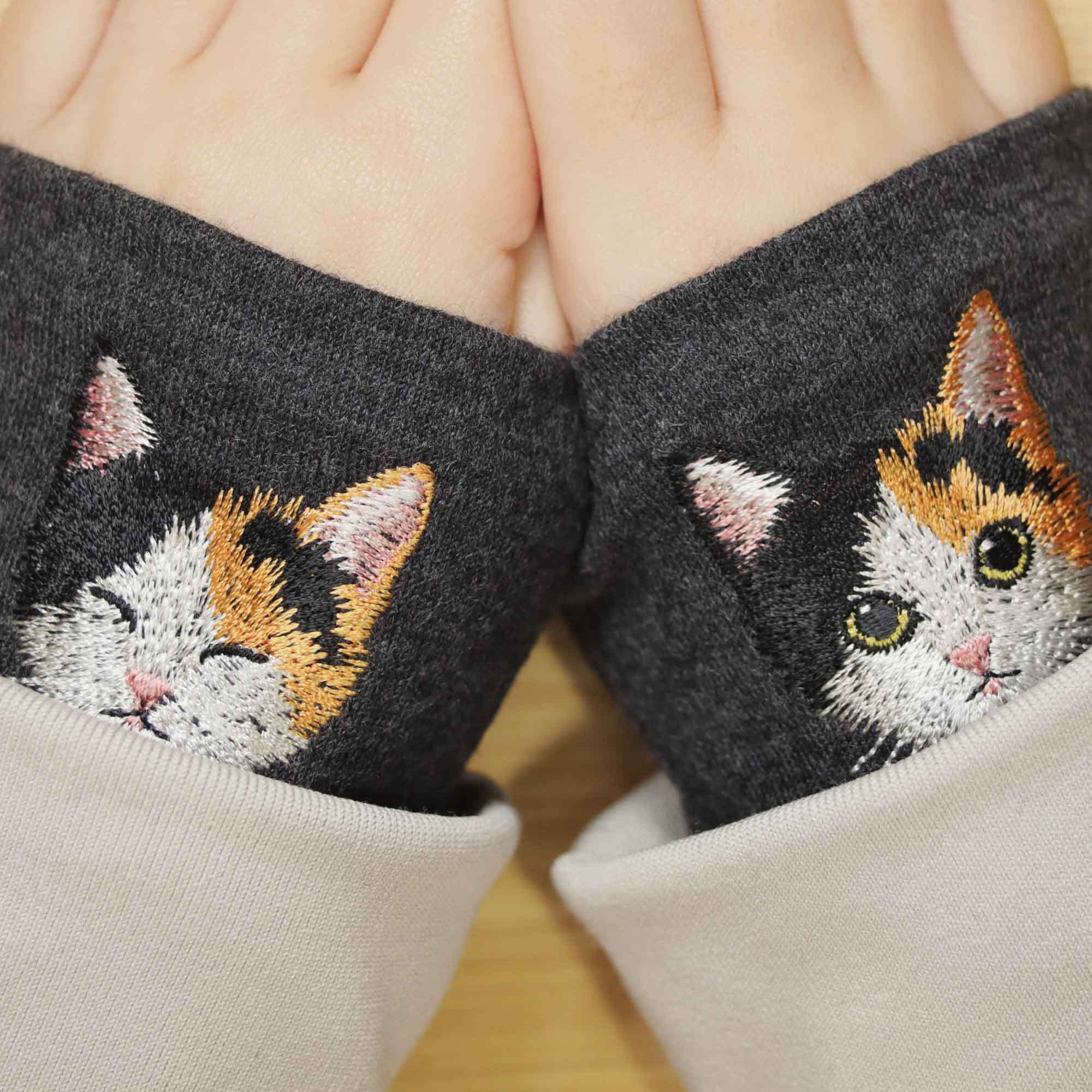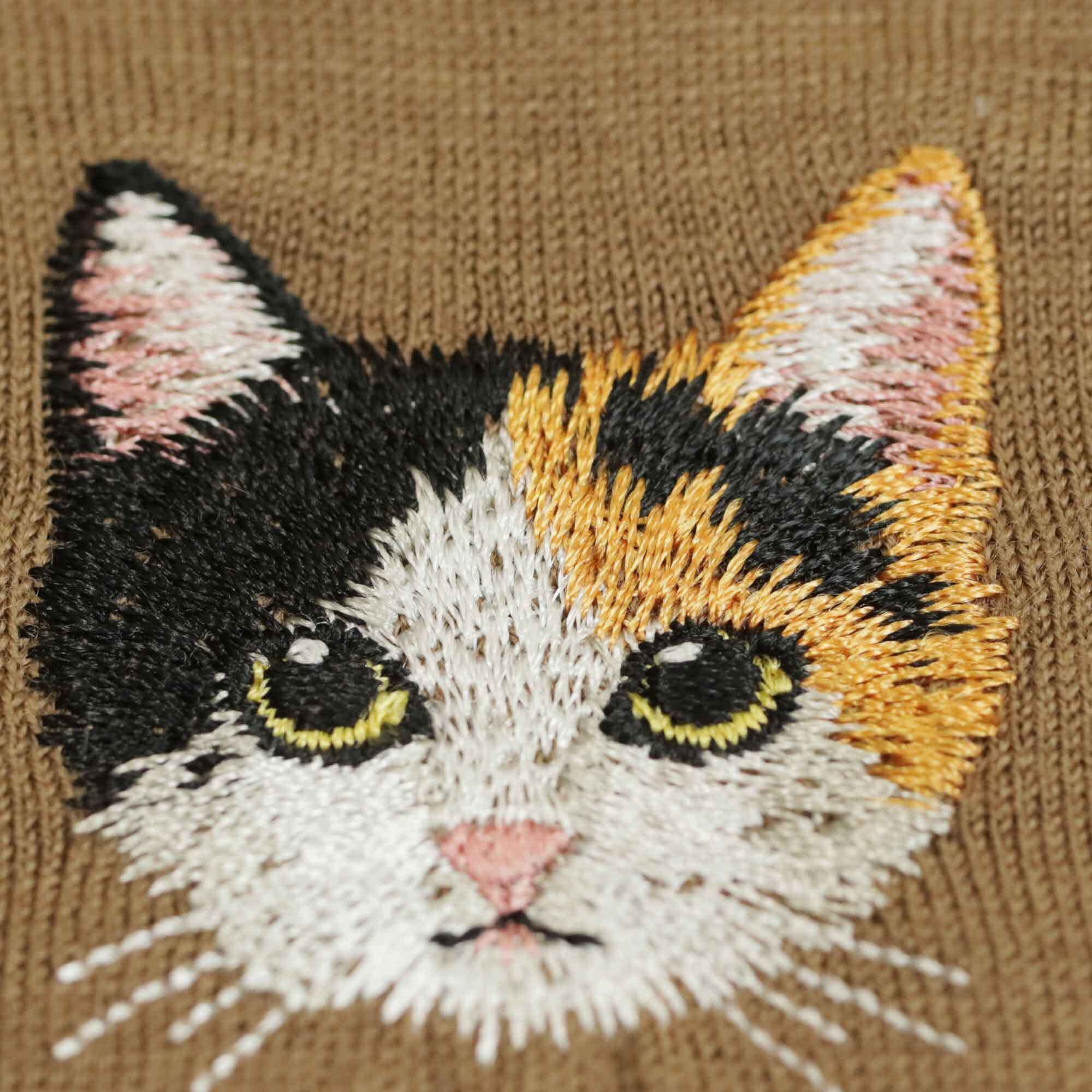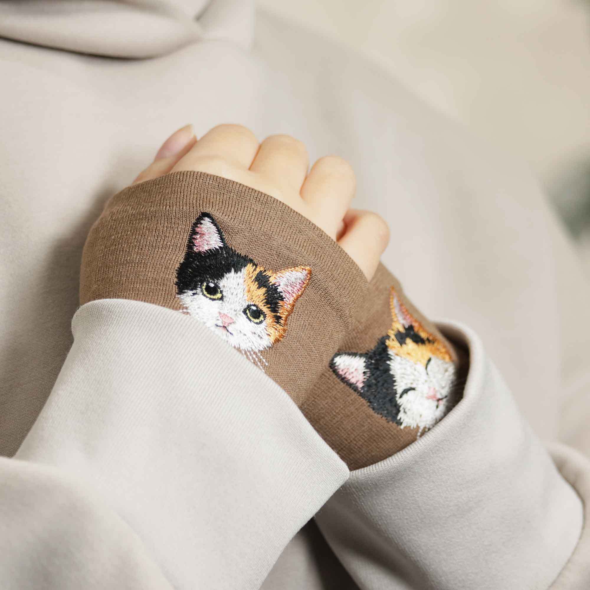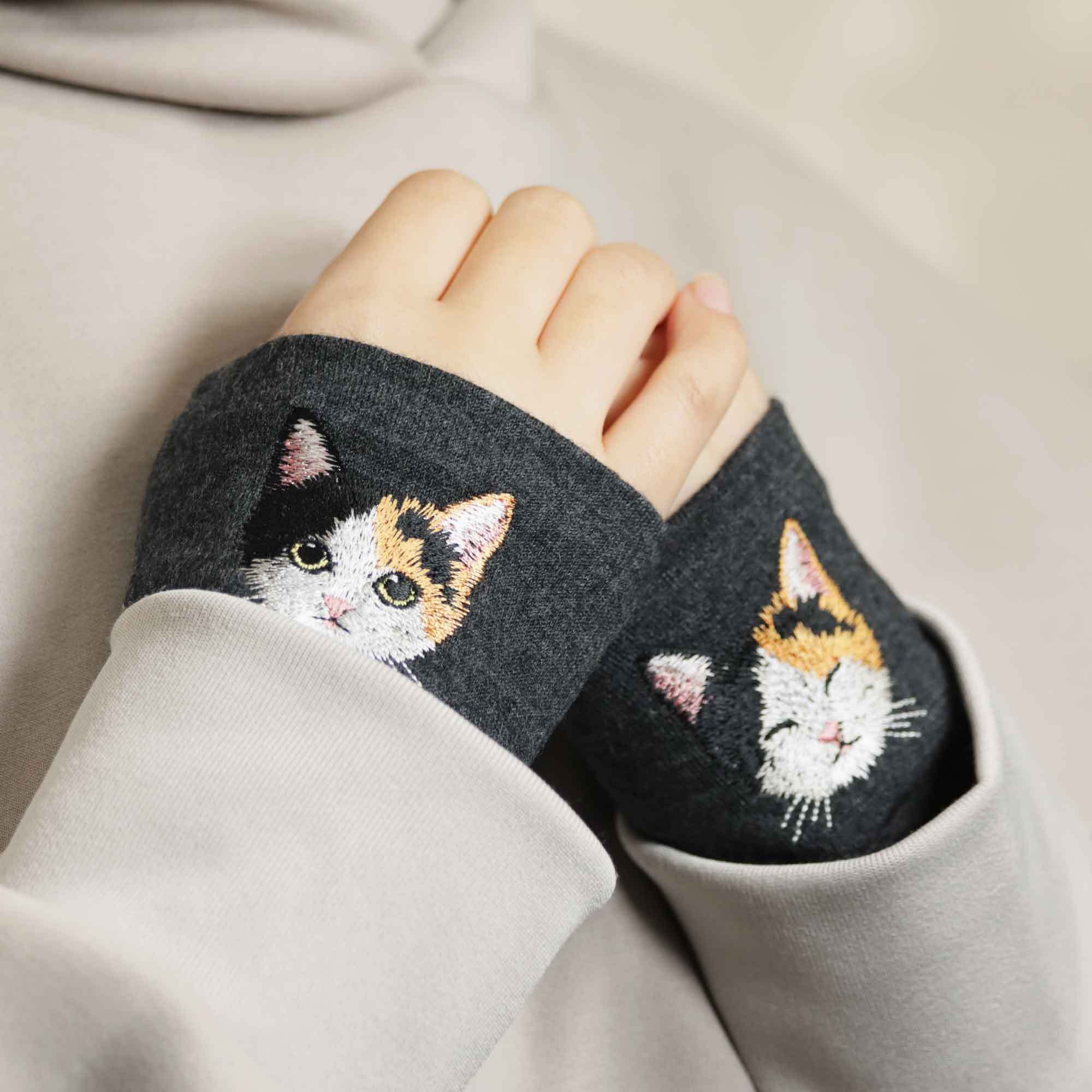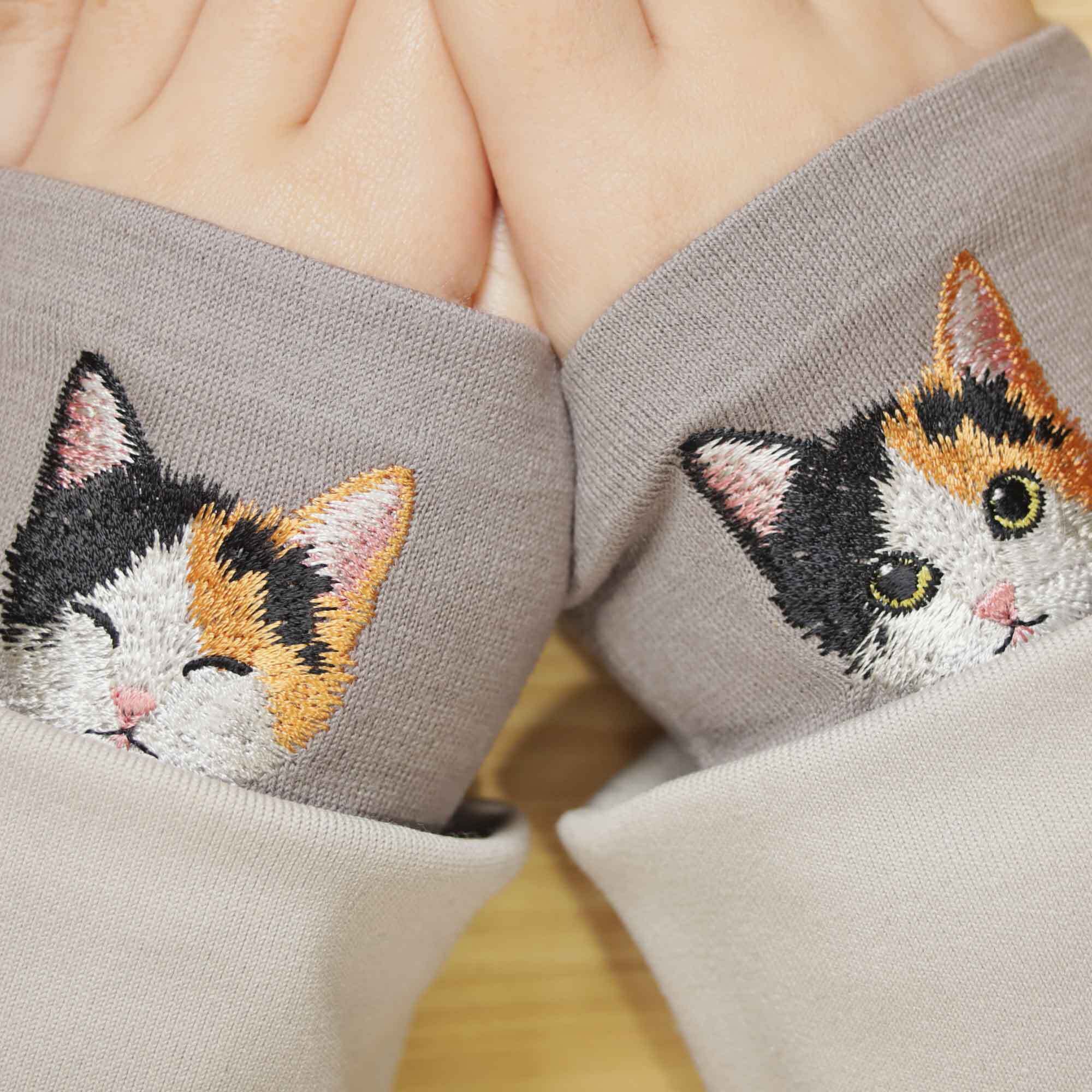 袖口から覗く愛らしいネコ刺しゅうをあしらいました